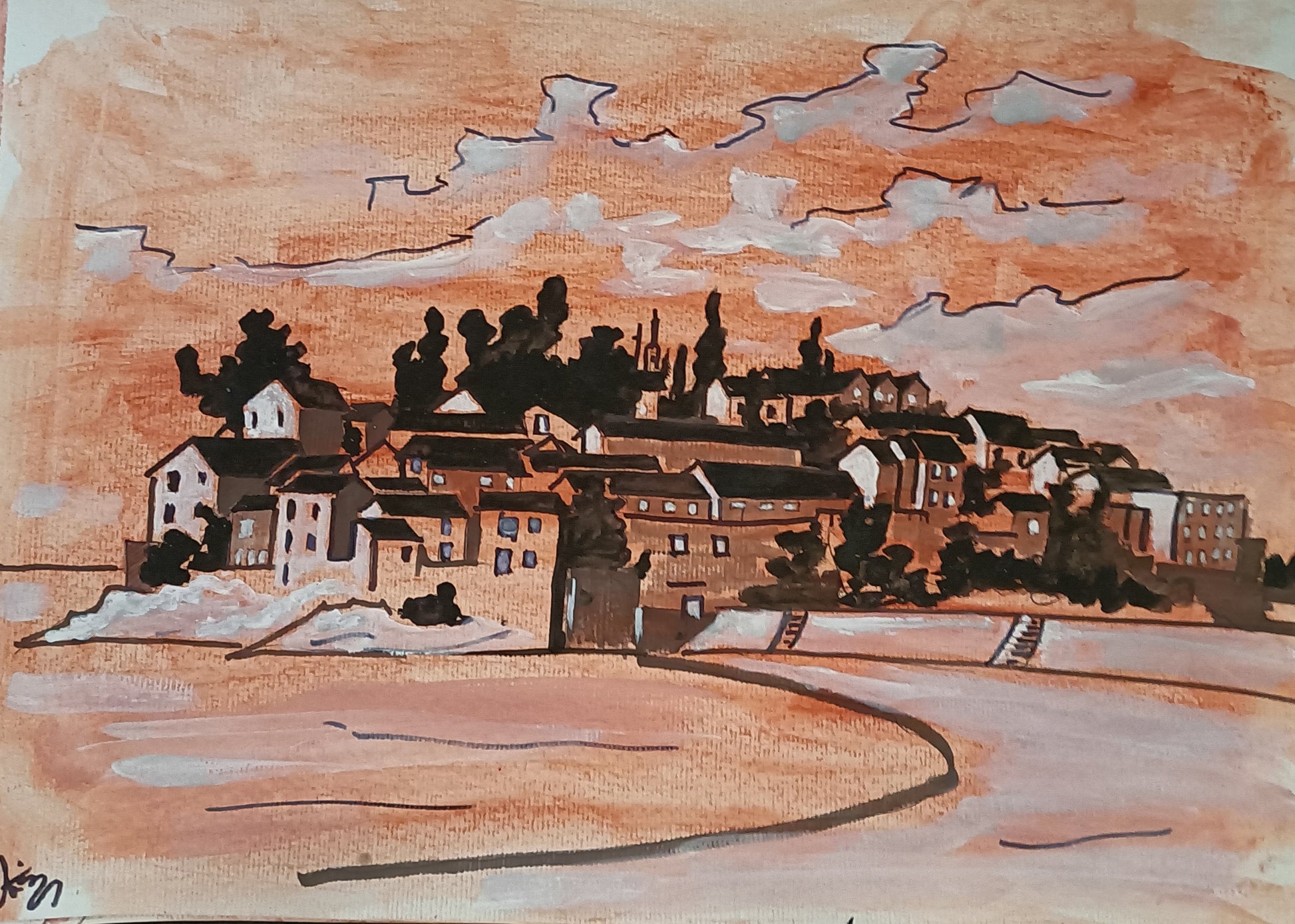 Combined technique - ink, sanguine, acrylic on watercolour paper, A3 (40x30 cm)
